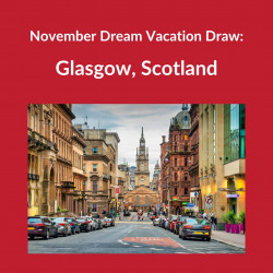 Congratulations to our November Dream Vacation Draw Winner: Bruce & Nikki Hebert of Pictou, NS, for a 4-Night trip to Glasgow, Scotland, valued at $2854!